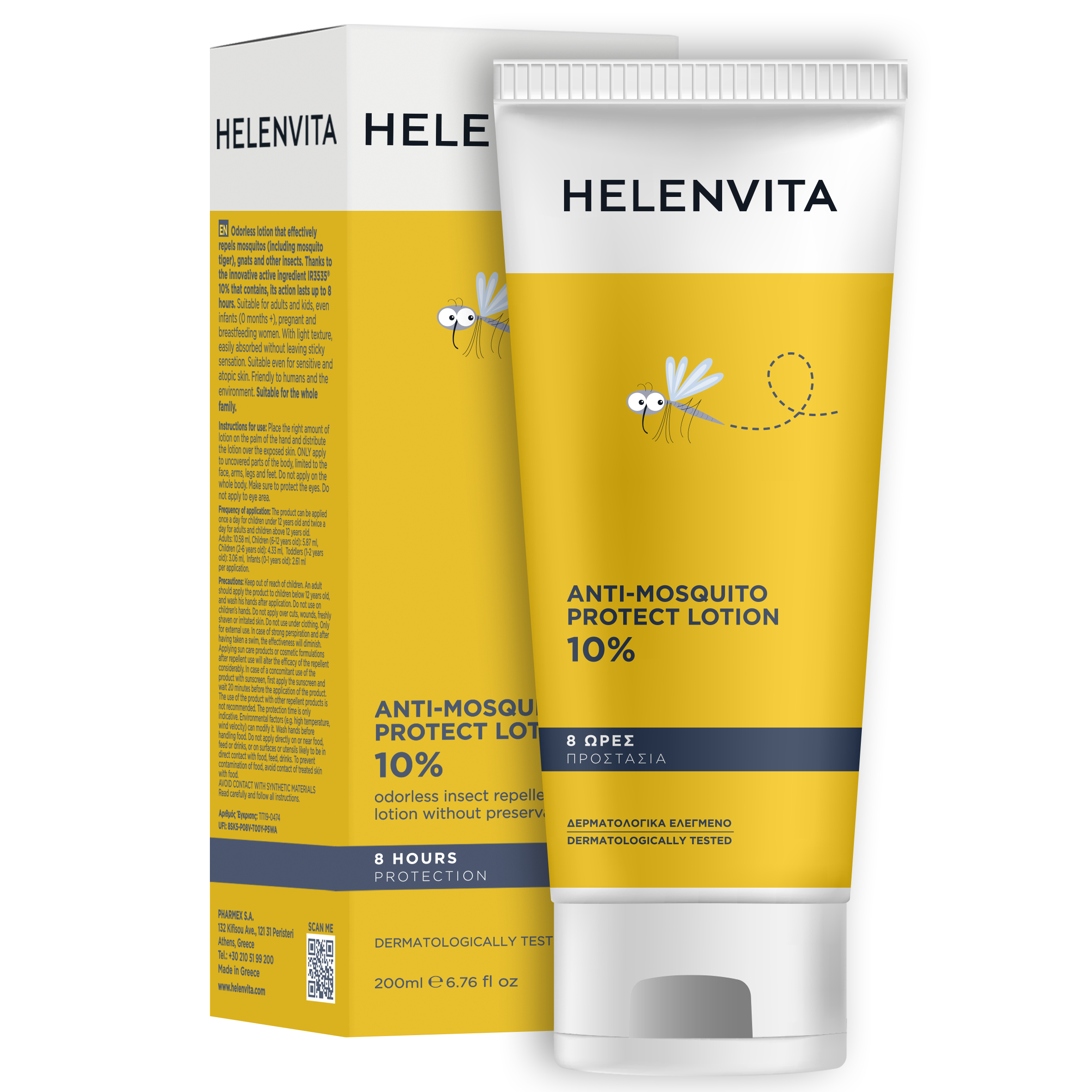 Protección para toda la familia. Con la loción repelente Anti-mosquitos de Helenvita tiene la seguridad y confianza de utilizar un producto biodegradable, que te protege por 8 horas y que puede utilizarse en pieles atópicas y sensibles. Sin color ni olor.